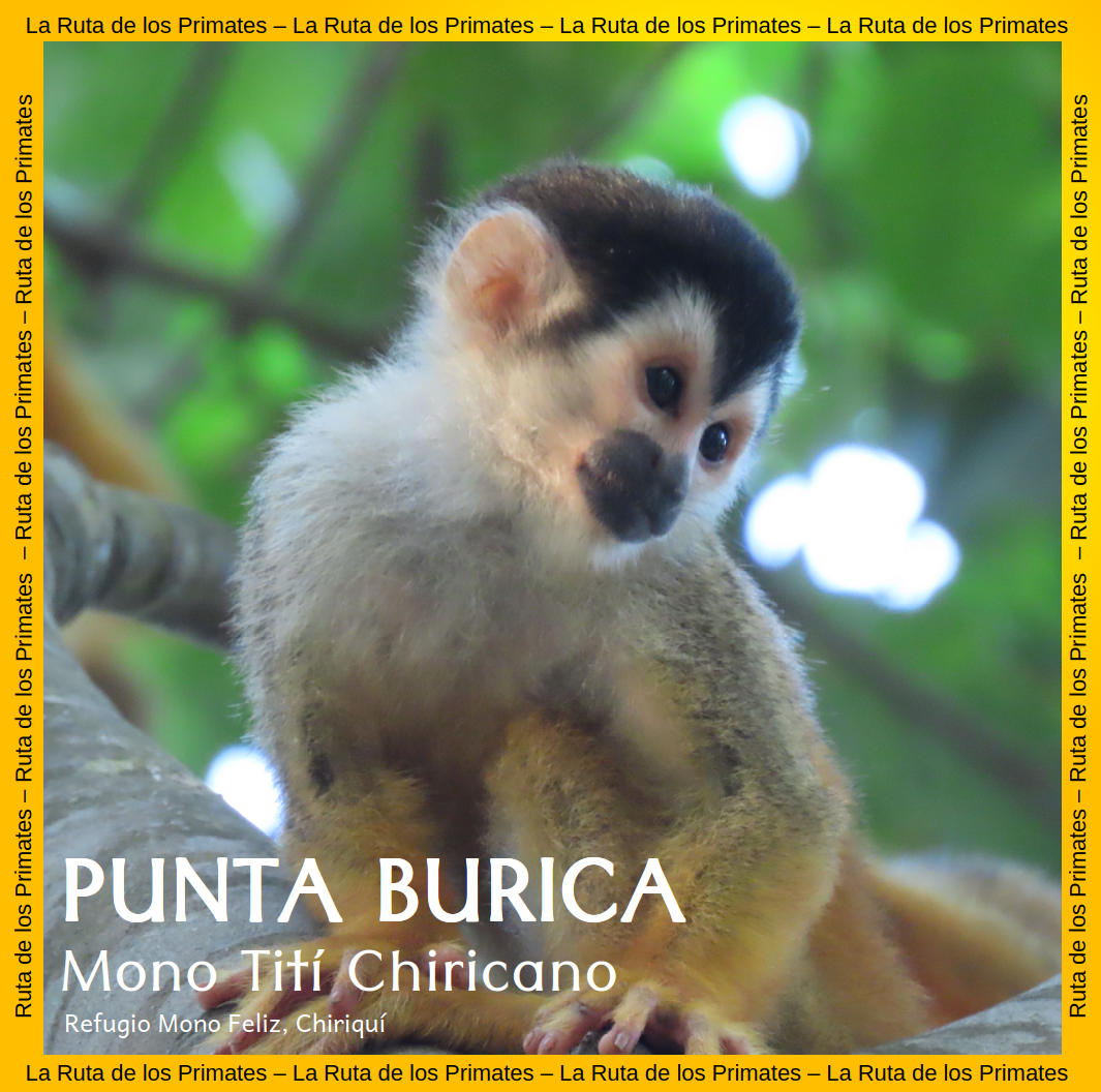 Mono ardilla o mono tití chiricano (Saimiri oerstedii) especie Amenazada del Suroeste de Chiriquí, Panamá y Centro costero y sur de Costa Rica.
